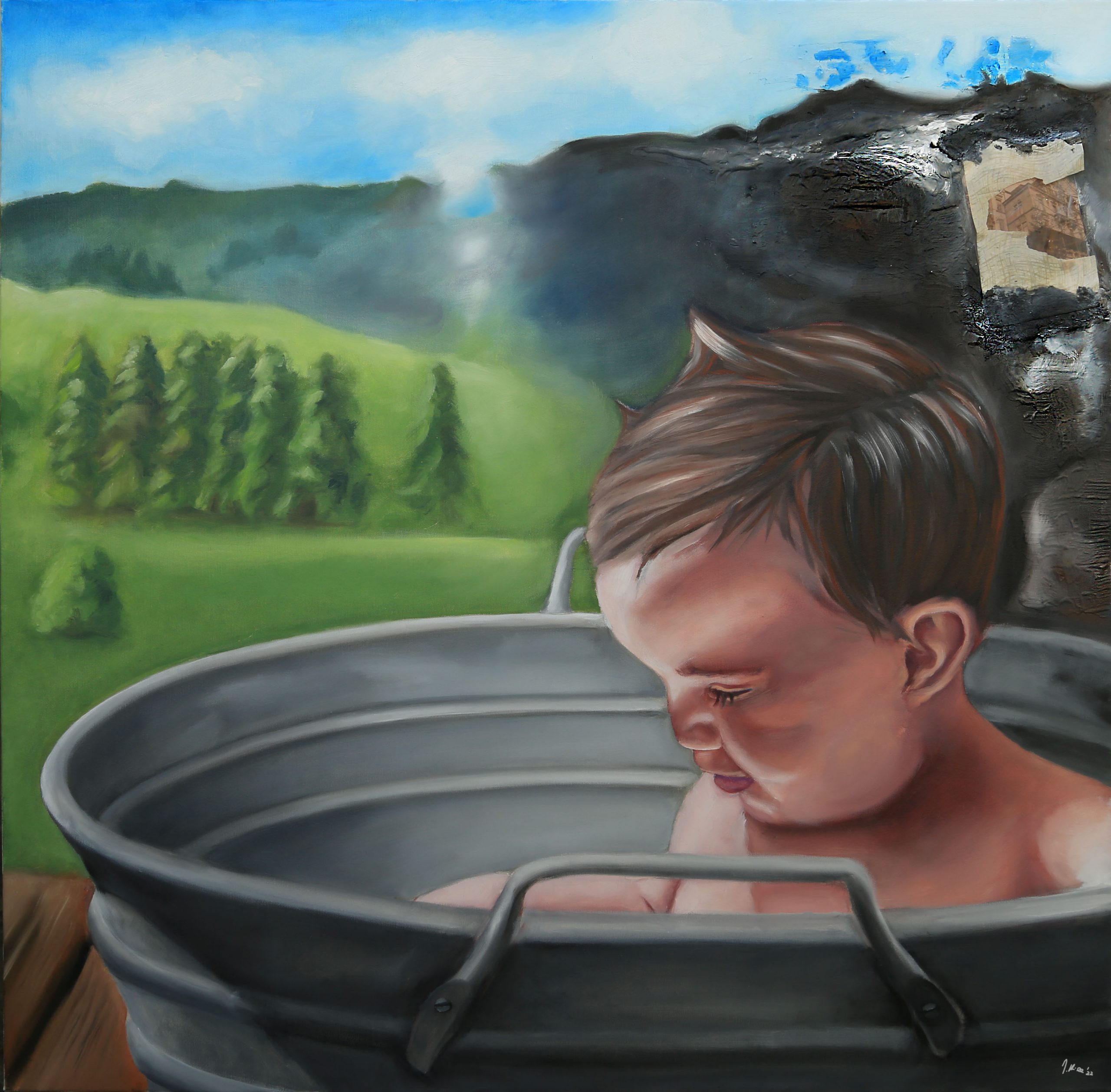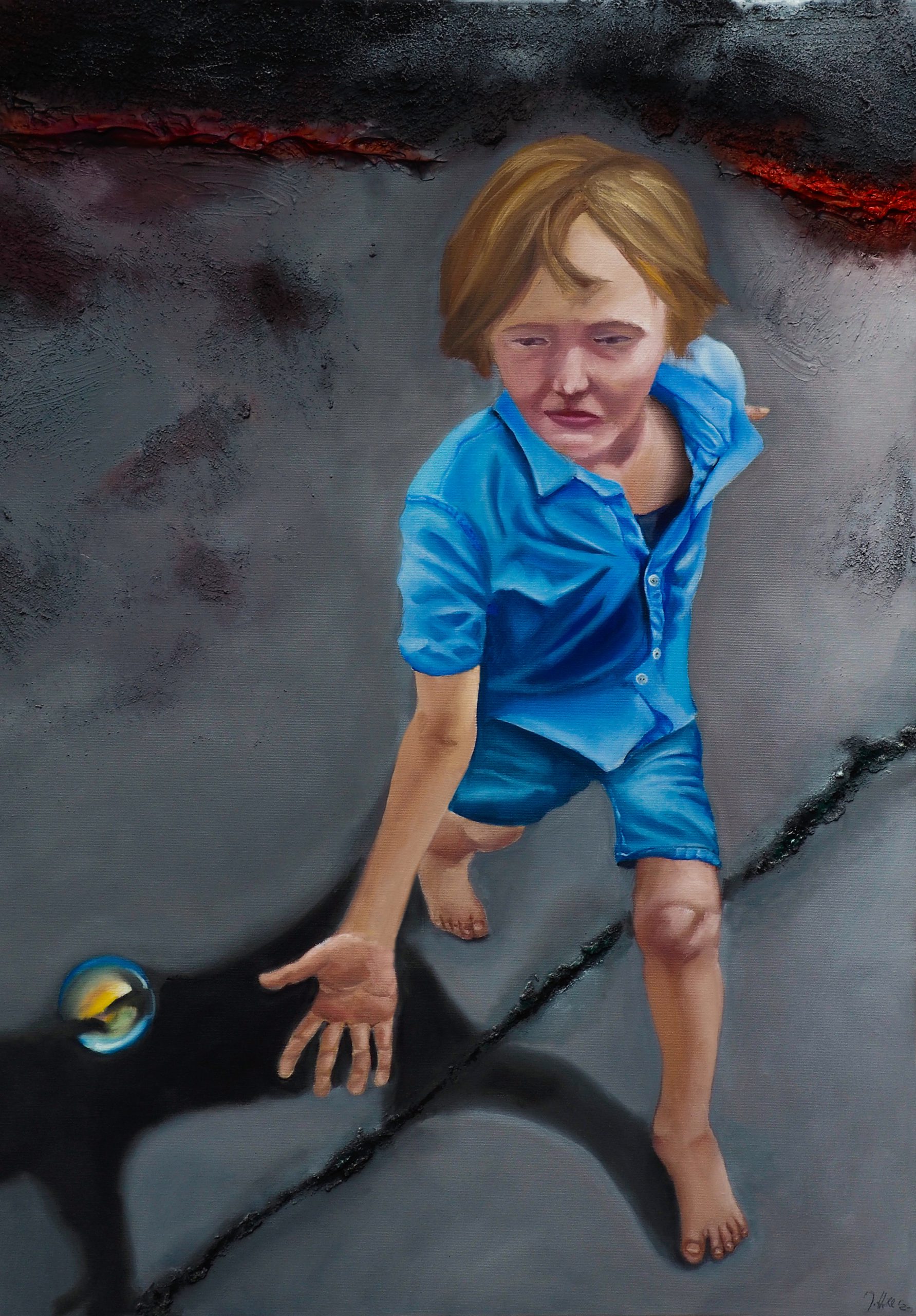 Betroffen steht der Maler vor den Unwägbarkeiten des Daseins, der in dieser oft hervorgebrachten Grausamkeit gegen die meist Schwächsten und ihres manchmal ein Leben lang, währenden Nachhalls. In dieser Form der kreativen und eigentlich auch körperlichen Hervorbringung des Impliziten, der Verletzung, erschafft Hill im Expliziten, dem Gemälde eine Art Signet des Aushaltens. Verzerrungen, Überformungen und gewollte Brüche in den Figürlichkeiten tragen einem Eindruck der Ausweglosigkeit und der damit einhergehenden Hilflosigkeit, dieser zu entrinnen, bei.