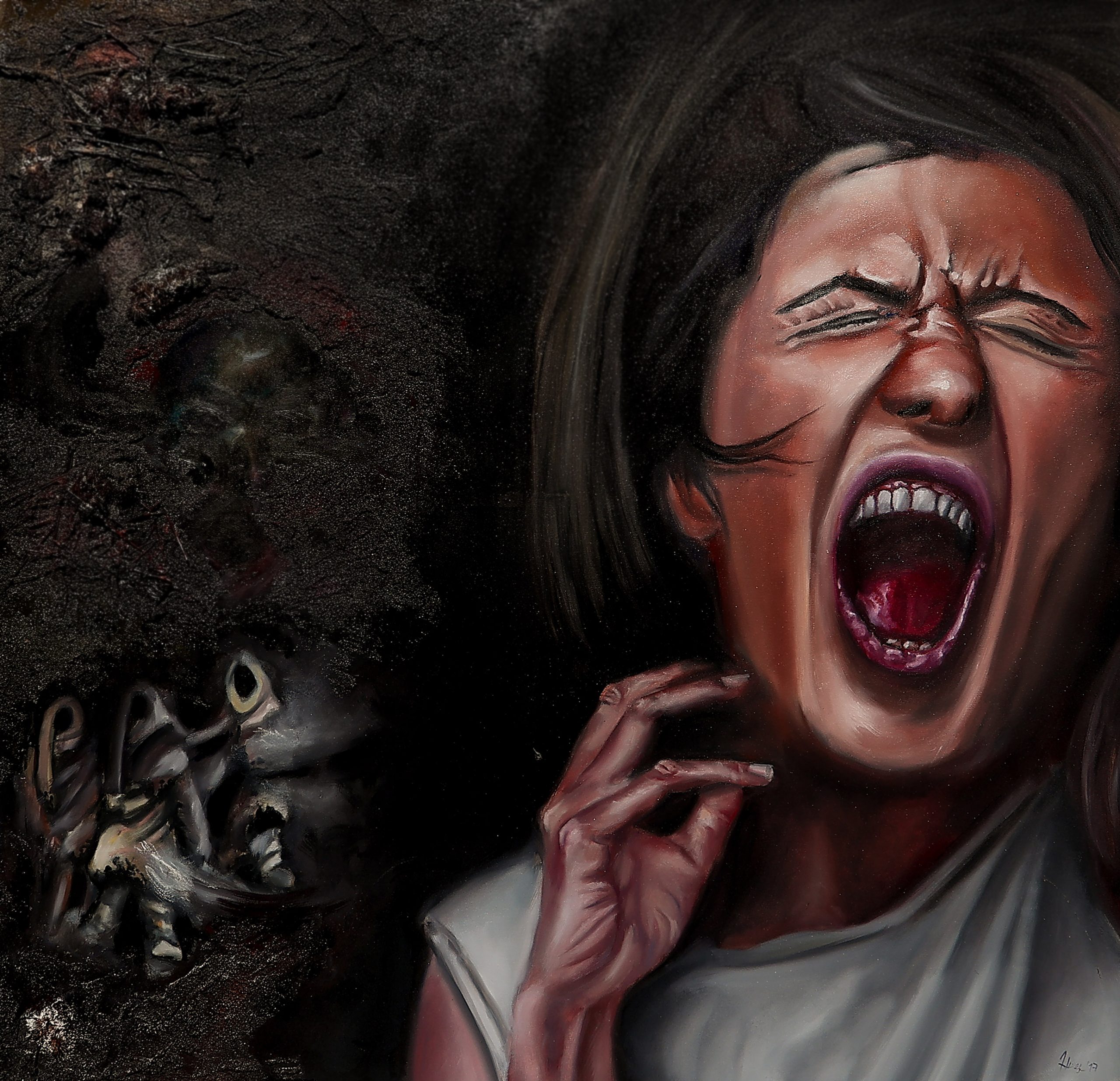 Jörg Hill macht in dem Gemäldezyklus über posttraumatische Belastungsstörungen, mit expressivem Duktus persönlich Erlebtes, aber auch Unglück, das in diesen Zeiten nahezu inflationär erscheint, zum Thema.